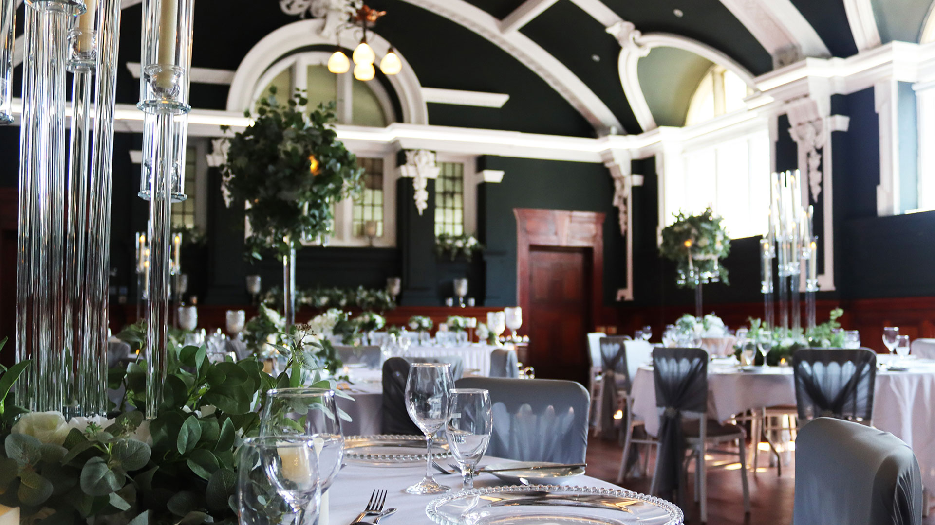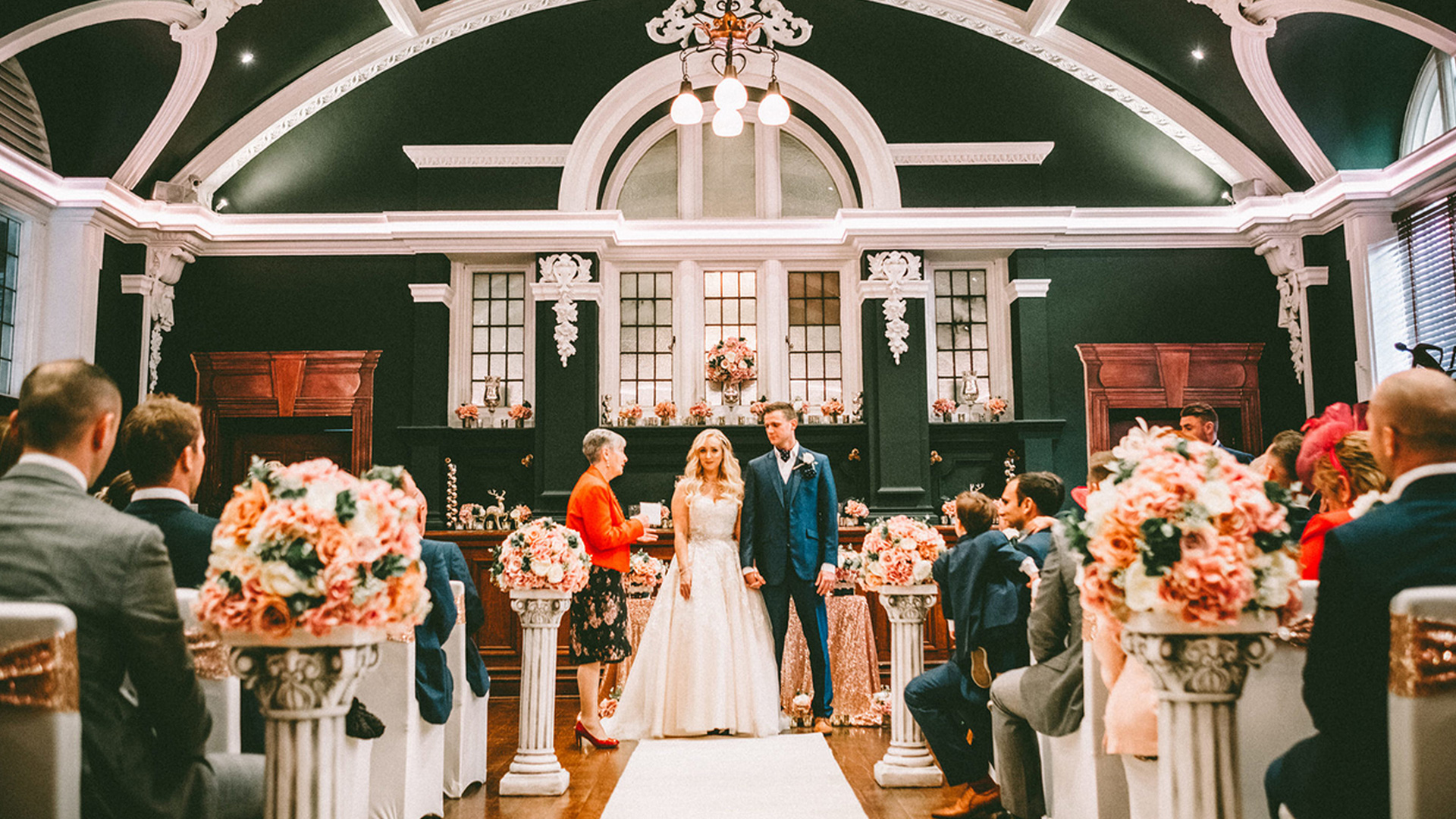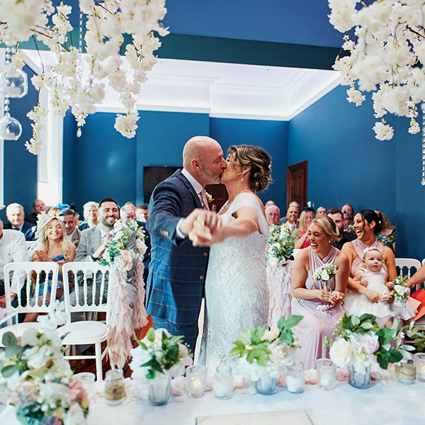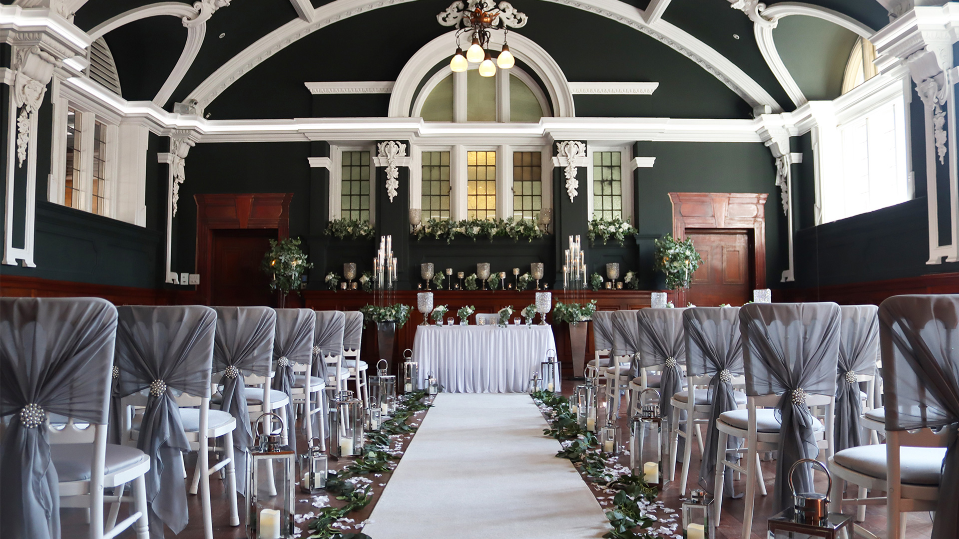 Arguably the most stunning ceremony room in Swansea City Centre, our impressive Banqueting Hall is licensed for larger ceremonies of up to 110 guests. Cherished family and friends will enjoy the decadent architecture and original mural as a backdrop for your special vows.